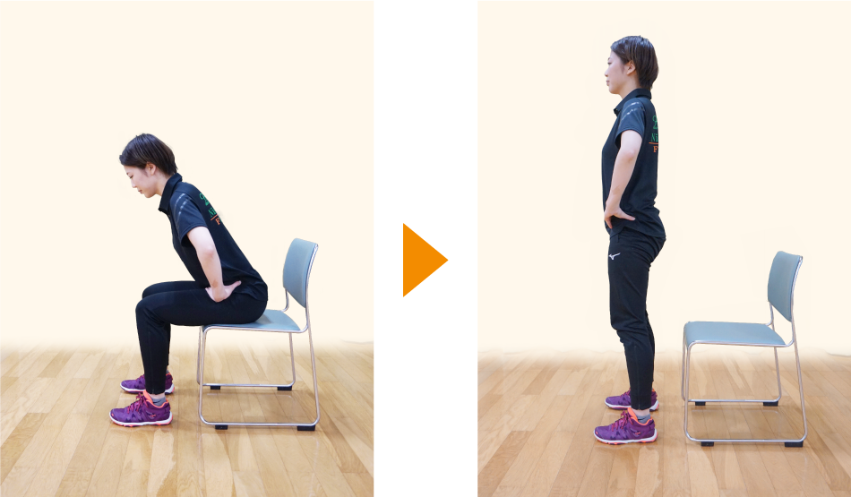 ①椅子に座った状態から立ち上がる